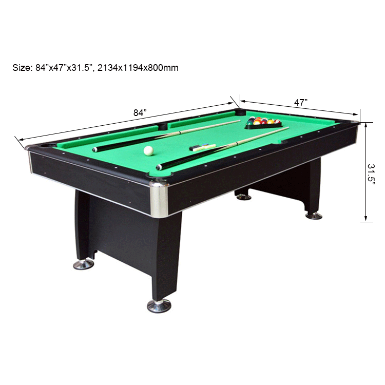 HPB8401 is a hot selling billiard table with black body. It comes with four chromed bands on four corners. Its appearance can attract your eyesight. Sturdy legs make the billiard table stand steady. This model has three different sizes, it can provide you with more options. The size is suitable for home leisure.