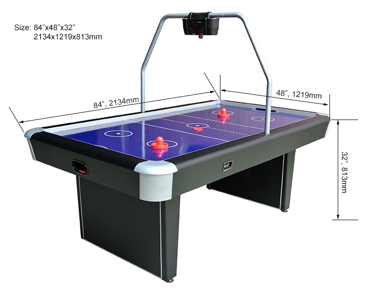 Are you looking for a big standing air hockey table as you have large space? HPMCA8401 would be one of your best choice. This air hockey table has an electronic scorer. Electronic scorer is upgraded scorer based on manual one. This air hockey table is covered with black color on body and blue playing area. It has two wall shaped legs.