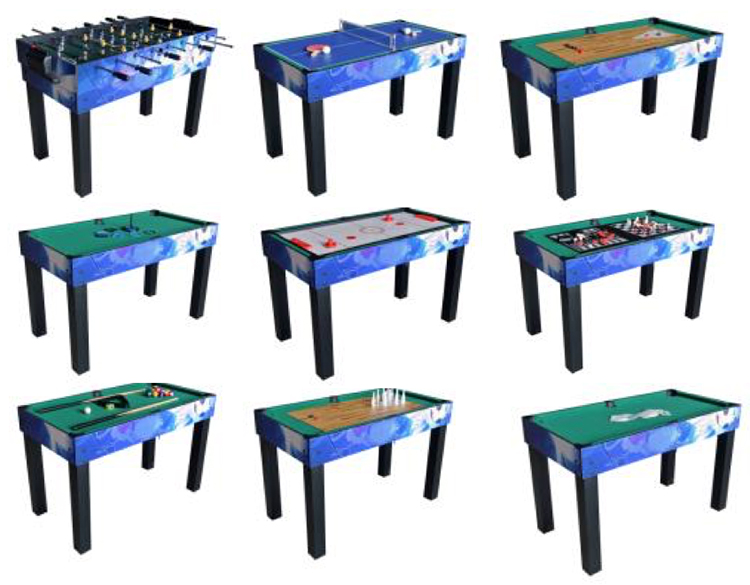 HPMCS4501 is a 9 in 1 hot selling game table. It combines with nine functions. Its appearance can attract your eyesight. It has four black square legs. It’s easy to clean the surface. Its length is 45″. The size is suitable for most places. It has two plastic scorers which makes it easy handling. This game table includes below games: